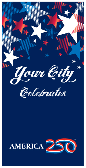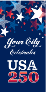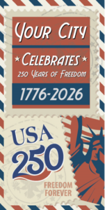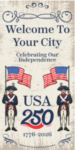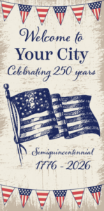 You can select from ready-to-ship stock banners or design custom banners featuring your city’s name, seal, or event branding. This allows you to celebrate the 250th anniversary in a way that reflects your local identity.