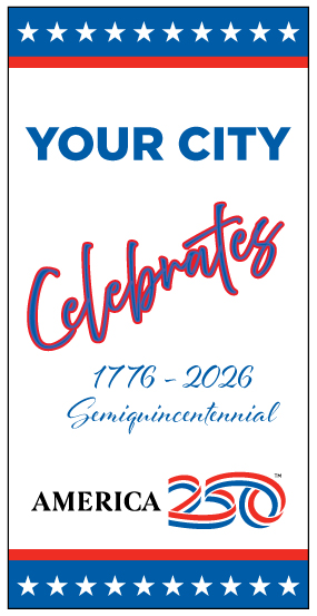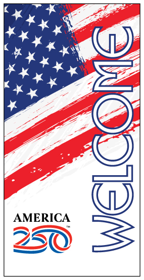 Display these commemorative banners across lamp posts, boulevards, or event venues to honor our nation’s founding and its journey. America’s 250th Banners offer an easy and effective way to visually celebrate with your community.